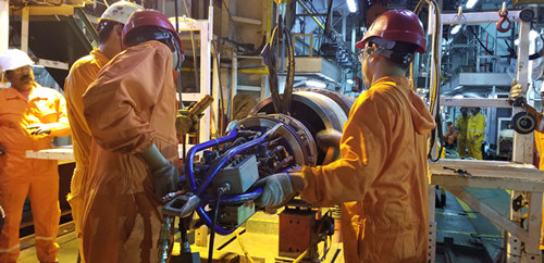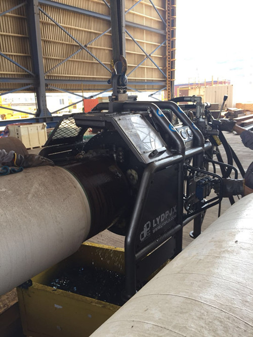 2018年8月27日,第一批项目团队成员飞抵卡塔尔,在ENKOM船厂进行NFA WHP3第一阶段20in复合管加工。当时整值卡塔尔夏季,天气酷热,卡塔尔业主要求异常严苛,团队成员齐心协力,管道坡口机坡口尺寸及精度符合业主要求,并通过第三方法国BV公司的检验。