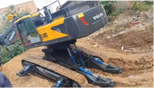 针对这一问题,德平团队对大功率挖掘机进行了大量升级改造,研发了专用的“抓管对口平台”。通过加装机身俯仰调平系统,该平台可在爬坡时始终保持重心出于安全位置,为驾驶员提供良好的视野。而液压辅助支撑系统可帮助平台在坡道上保持稳定,从而确保后续吊装和对口作业安全进行。